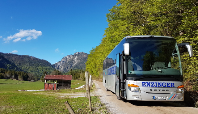 Vorbei an Schneizlreuth überqueren erreichen wir vorerst das Land Salzburg mit Unken und Lofer. Ab dem Pass Strub sind wir in Tirol unterwegs. Entlang der Loferer Steinberge erreichen Wairding, das Pillerseetal mit St. Ulrich, Fieberbrunn und St. Johann in Tirol. Mit tollem Blick auf Kitzbühler Horn und Kaisergebirge führt unsere Tour vom Tiroler Ort Kössen in den bayerischen Grenzort Reit im Winkl im Chiemgau. Rückfahrt über die Deutsche Alpenstraße, Ruhpolding, Inzell, Thumsee nach Bad Reichenhall.