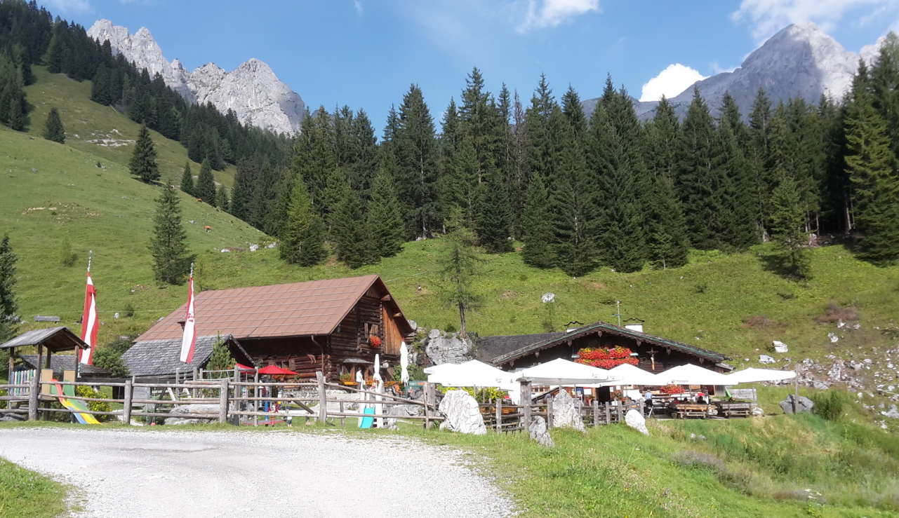 "Urigste und schönste Alm der Alpen" auf 1.280m am Dachstein-Gebirge (Bischofsmütze) gelegen. Spaziergang zum malerisch gelegenen Almsee möglich.